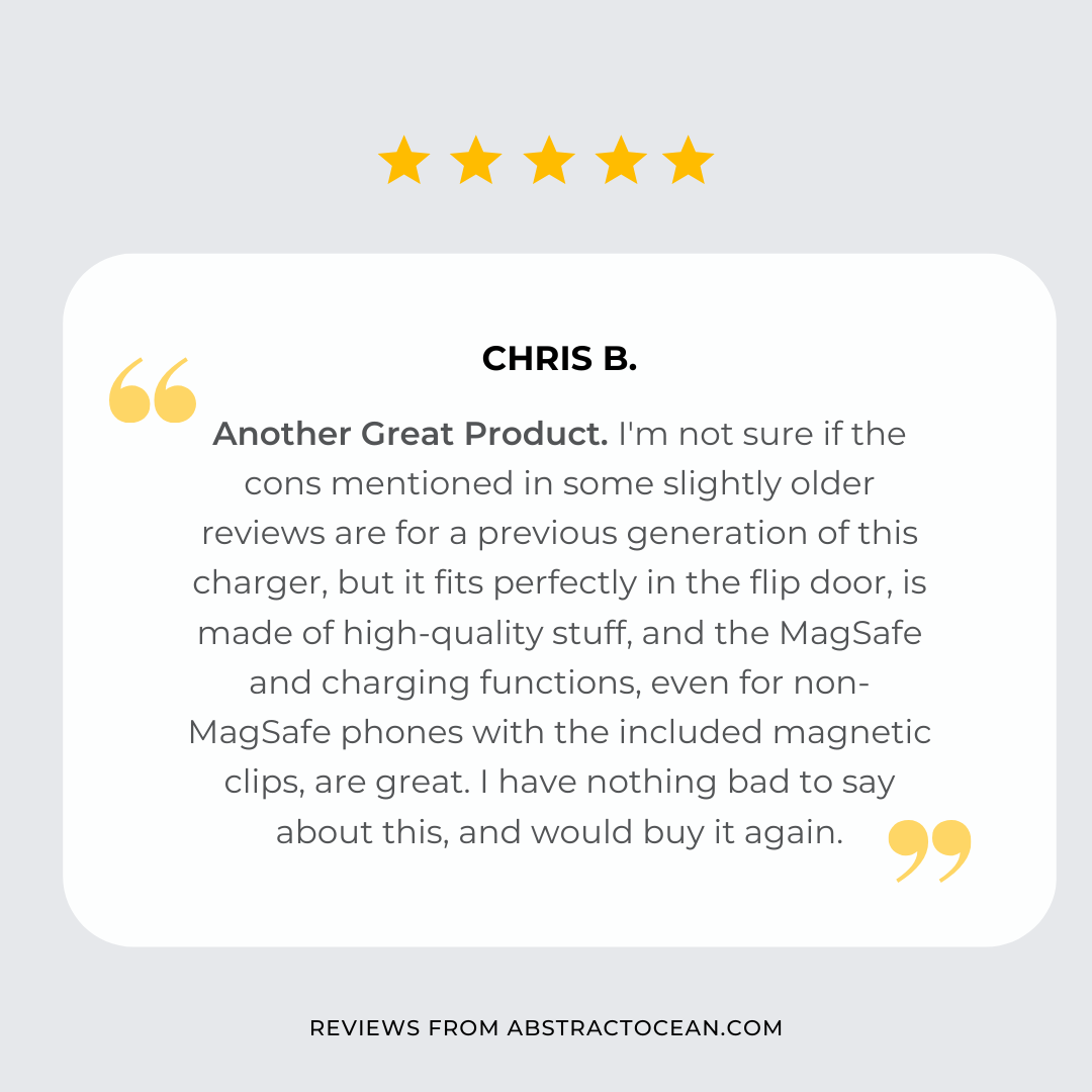 The charger has 20 magnets carefully placed to align with the MagSafe magnets in supported devices. Your phone will effortlessly snap in place and stay secure.