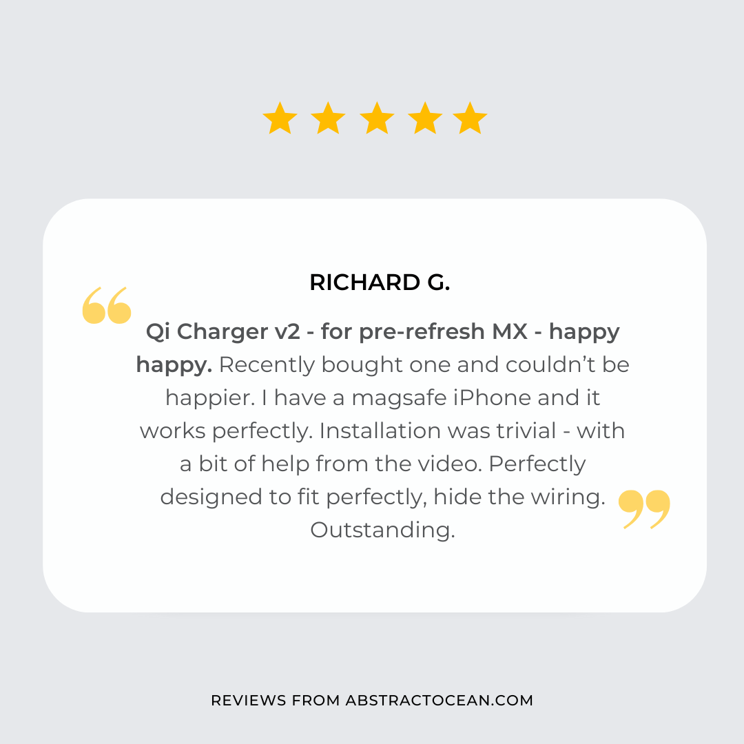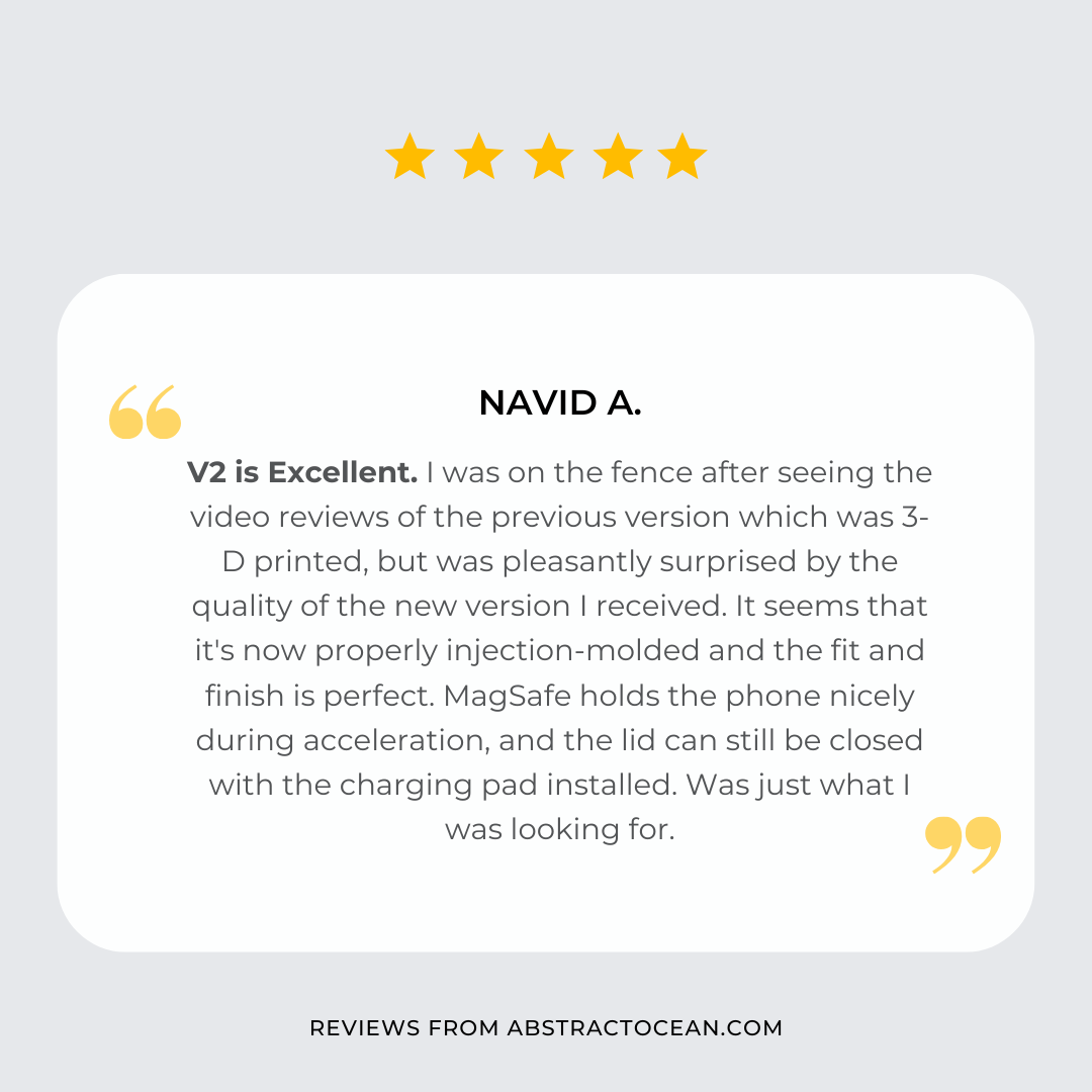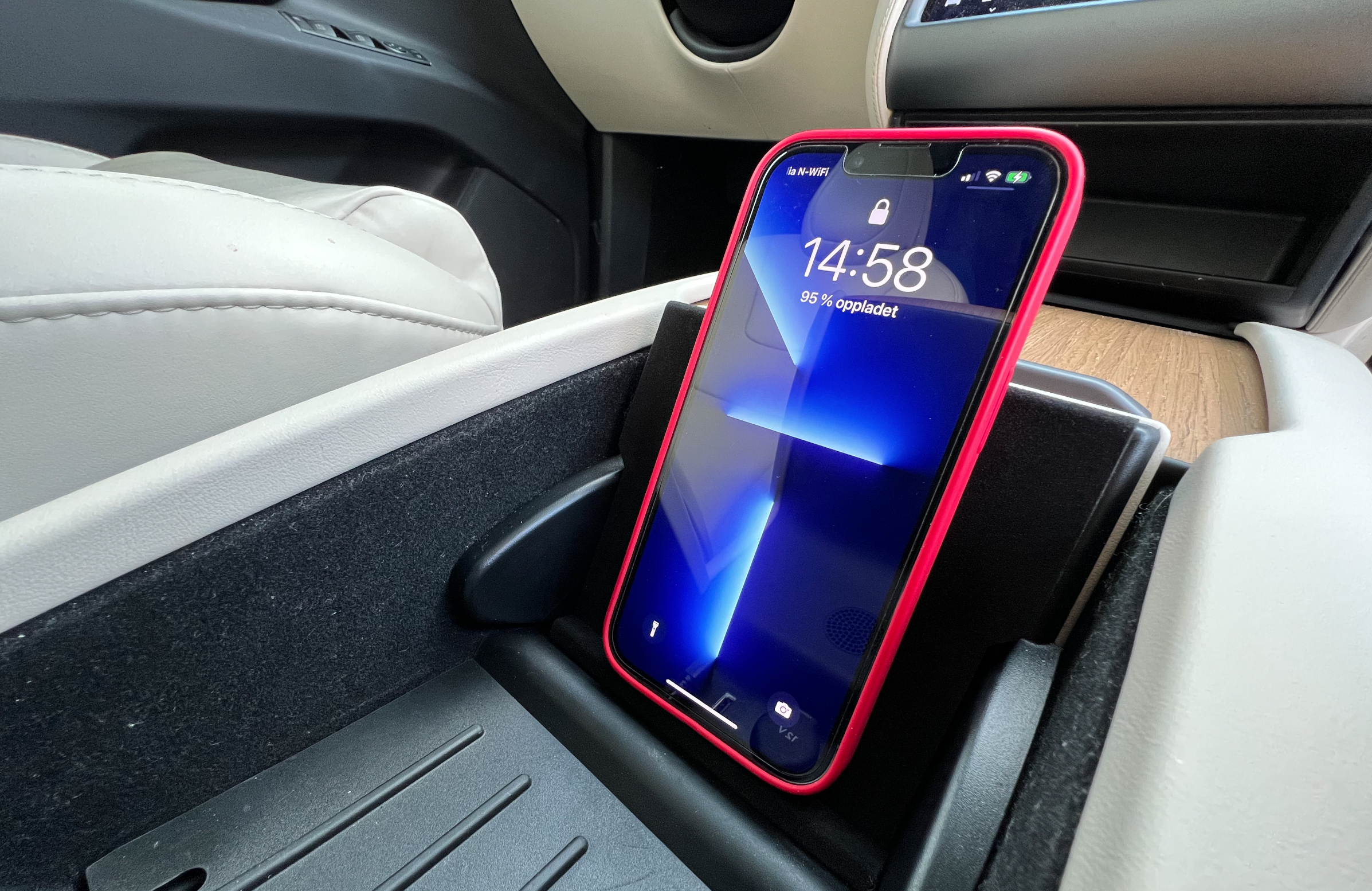 The charger is designed to give you the best charging experience possible. Simply drop your phone on the charger and it will start charging wirelessly. The charging surface is covered in Alcantara fabric allowing the charger to blend in while adding to the interior.